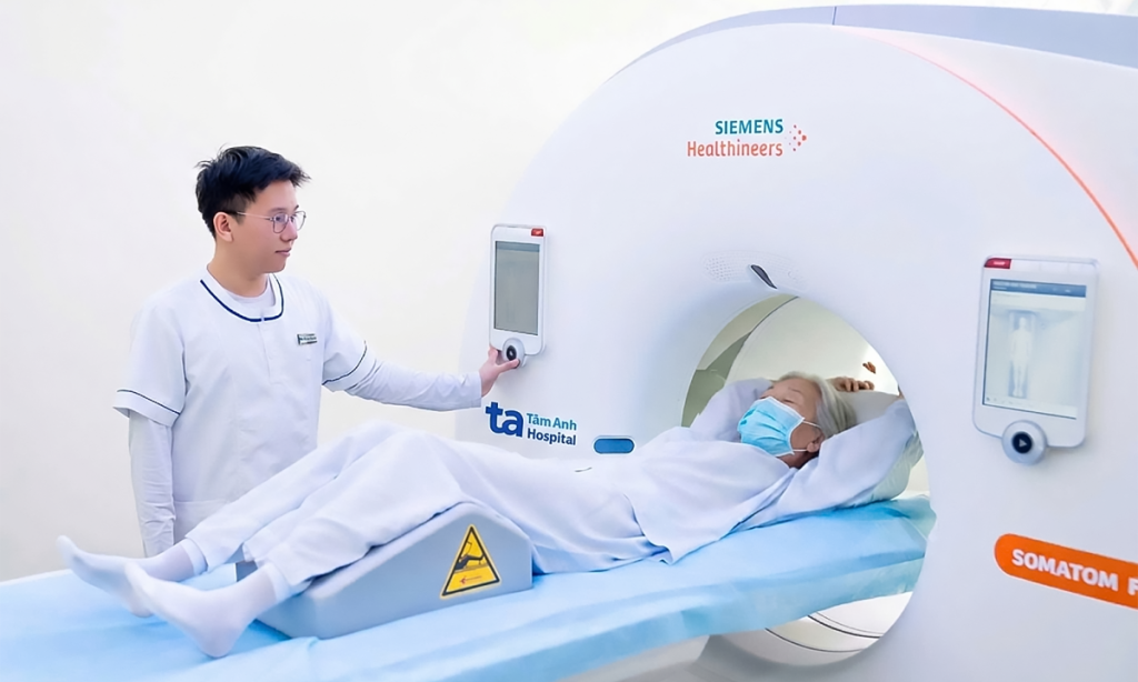Bà Vọng được chụp cắt lớp vi tính đánh giá hiệu quả điều trị sau ba tháng dùng thuốc miễn dịch. Ảnh: Bệnh viện Đa khoa Tâm Anh