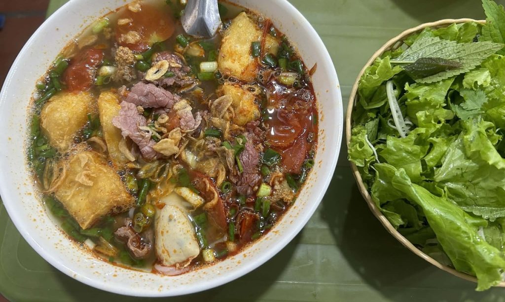 Một suất bún riêu tại quán bún bị xử phạt hôm 5/3. Ảnh: Tuấn Anh