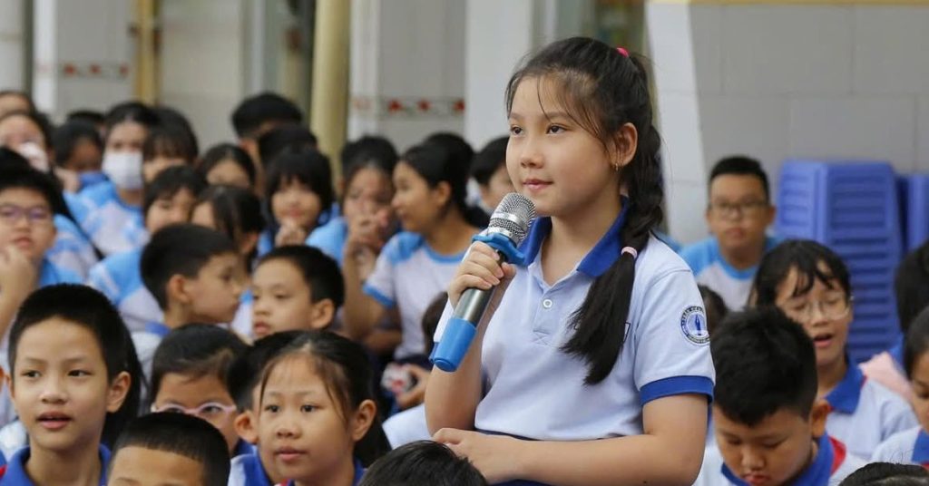 Học sinh Trường tiểu học Trần Hưng Đạo (phường Cầu Ông Lãnh, TP.HCM). Đây là trường theo mô hình tiên tiến hội nhập quốc tế – Ảnh: T.H.
