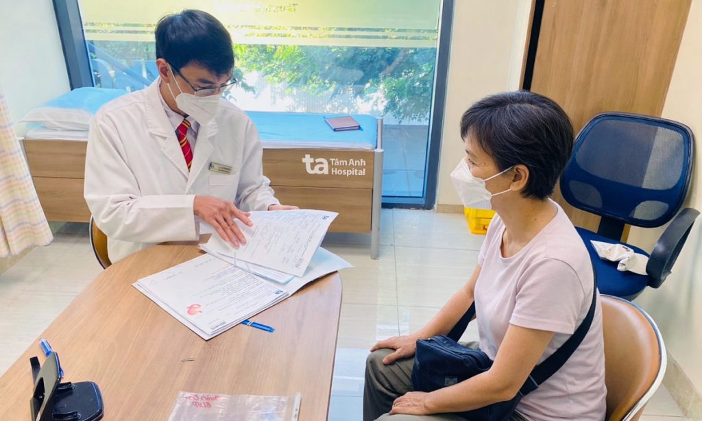 Bác sĩ Trung giải thích các kết quả khám cho bà Hiên. Ảnh: Bệnh viện Đa khoa Tâm Anh