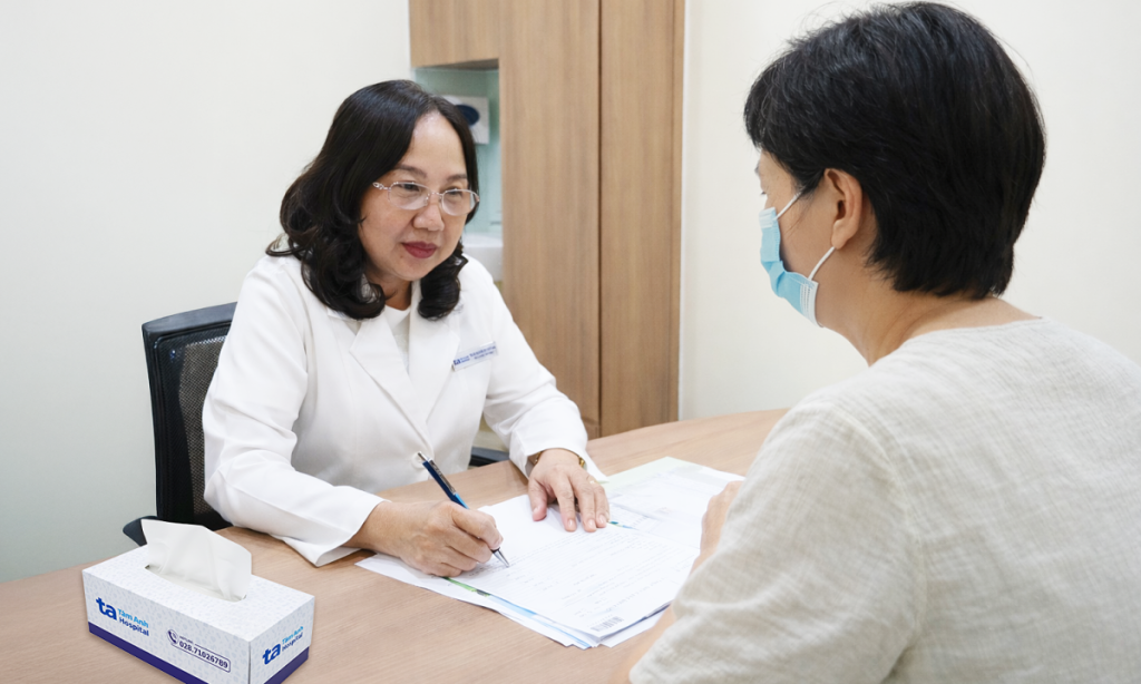 Bác sĩ Mai tư vấn cho người bệnh. Ảnh: Bệnh viện Đa khoa Tâm Anh