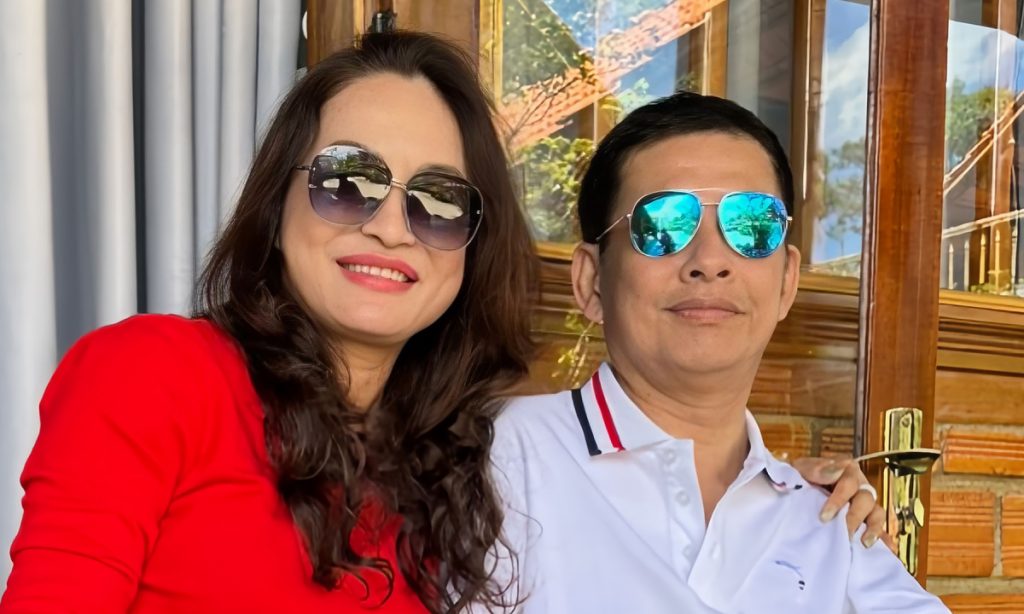 Vợ chồng Tấn Beo trong chuyến đi Bảo Lộc mới đây. Ảnh: NVCC