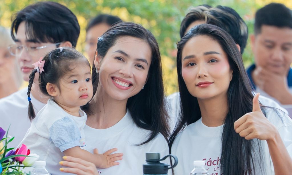 Vũ Hoàng My lần đầu bế con gái đi sự kiện