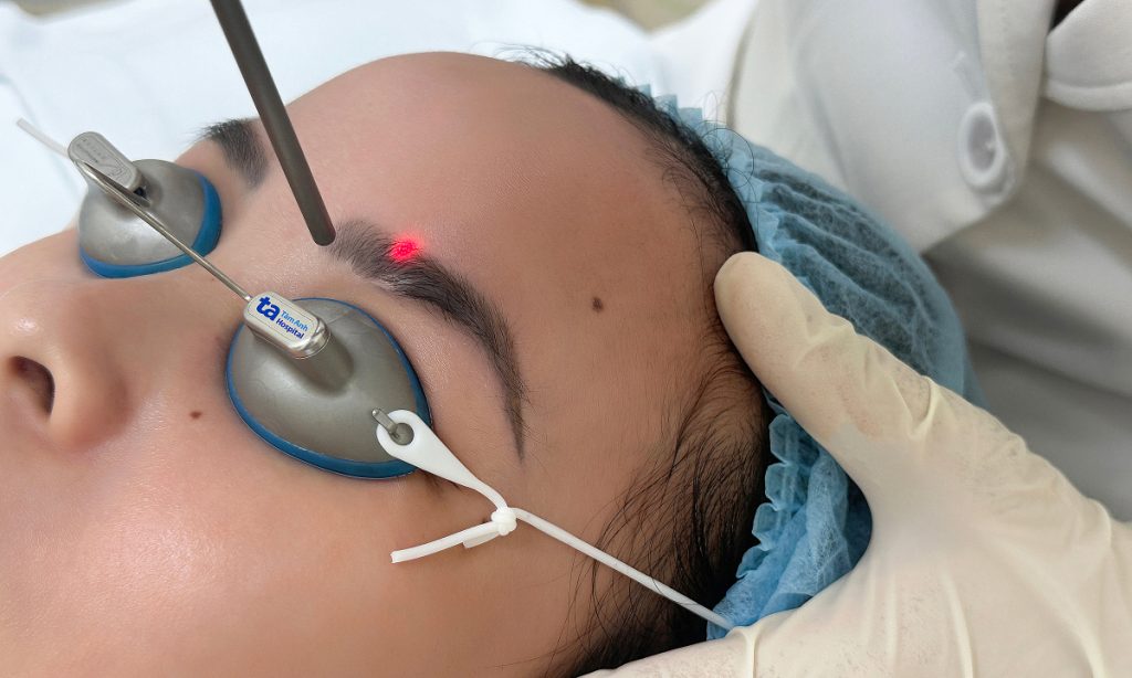 Bác sĩ sử dụng laser pico xóa mực xăm chân mày. Ảnh minh họa: Phòng khám Đa khoa Tâm Anh Quận 7